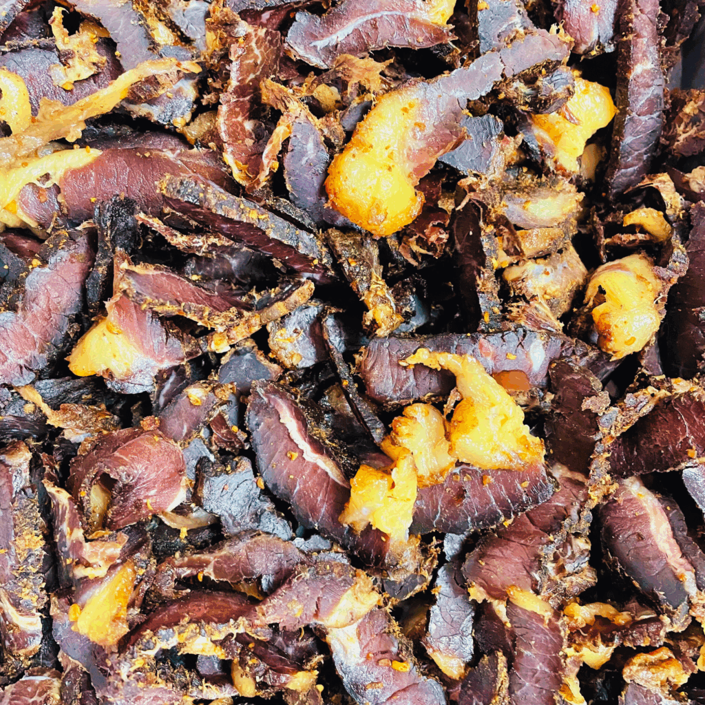 In contrast, white fat comes from grain-fed or feedlot cattle. It’s softer, waxier, and doesn’t offer the same deep taste when used in biltong.